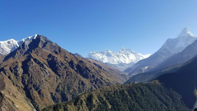 エベレスト、ローツェ、アマダブラムを望む大展望を楽しみ、ナムチェに戻ります。